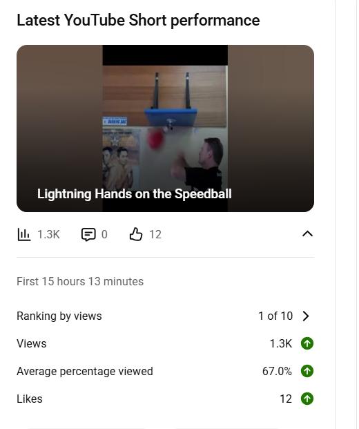 Out of my last 10 Youtube Short videos, this was the top-performing video. That told me this piece of content on boxing was more likely to be discovered by new viewers, helping build momentum for future Shorts.